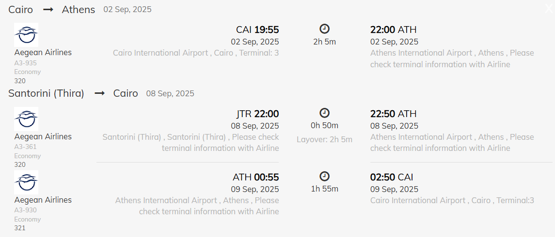 - Ferry from Athens to Santorini. Depart: 07:00 – Arrive: 12:00