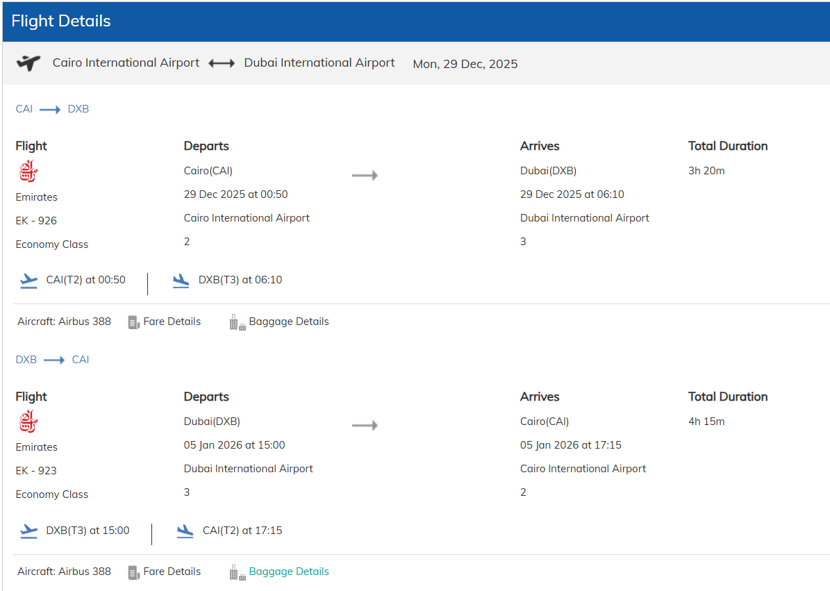 - Luggage weight: 3*23 kg – 7g handbag per passenger