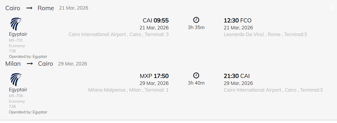 • Airline Name: Egyptair airline