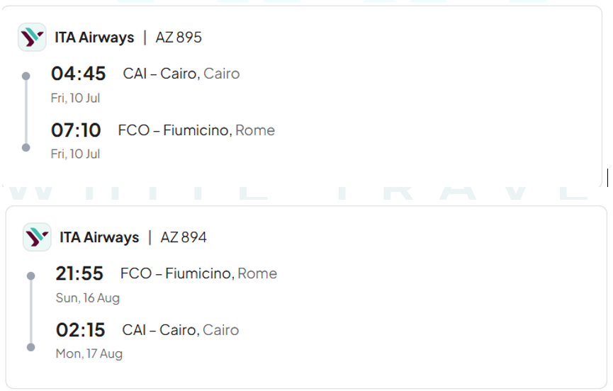 - Train from Naples to Rome airport. Depart: 16:35 – Arrive: 18:37 (1 stop 20m in Rome Termini) on 16-7